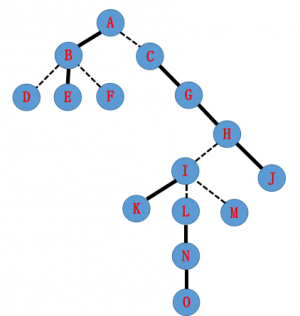 如图,现在有⼀棵原树,加粗边是实边,虚线边是虚边。