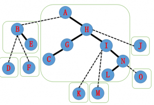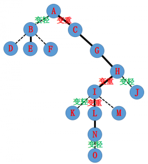 假设我们有这样一棵树,实线为实边,虚线为虚边。
