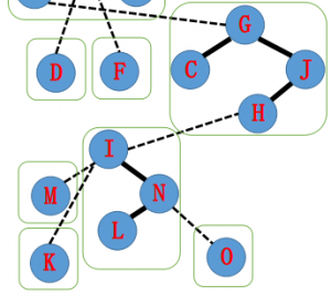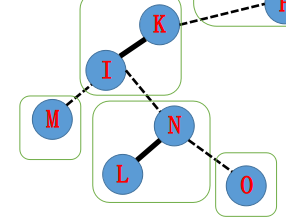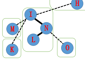 原来的实边 $I \to K$ 要去掉,这时候我们把 $I$ 的右儿子指向 $N$, 就得到了 $I$—$L$ 这样一棵 Splay。
